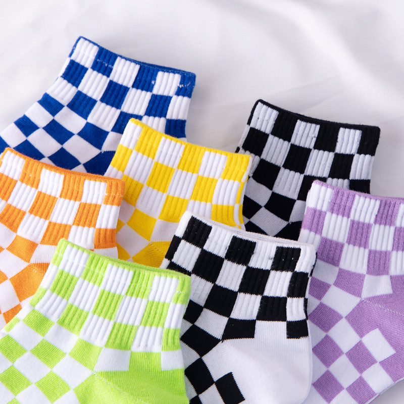 袜子女短袜浅口棋盘格低帮棉袜方格网红可爱袜子ins国潮船袜四季