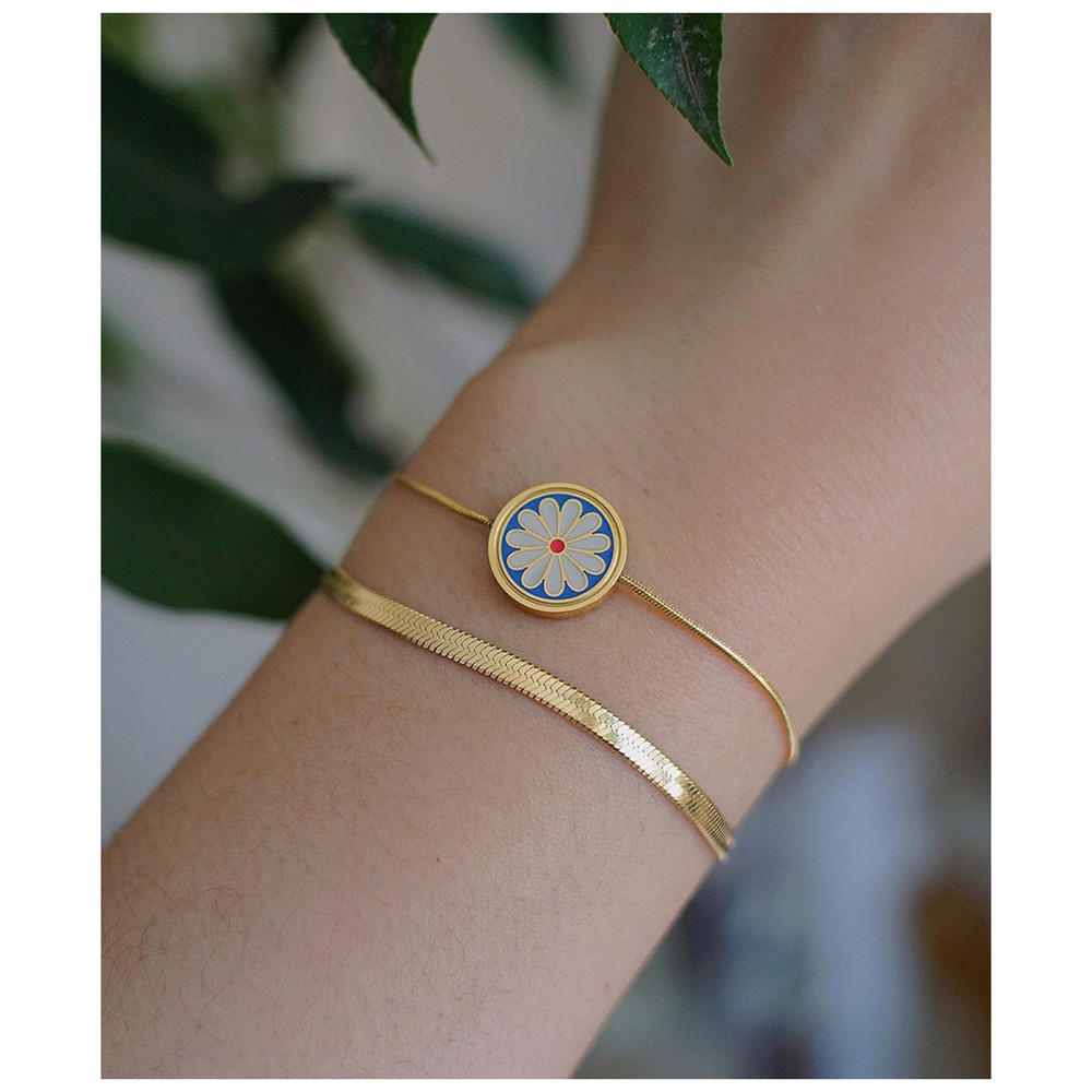 OKAY 美国Vintage小众设计油画小雏菊罗盘手链女可调节质感花朵热门设计联盟服务商