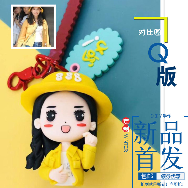 照片定制新年礼物软陶公仔真人泥塑q版diy钥匙扣雕塑人像情人节热门设计联盟服务商