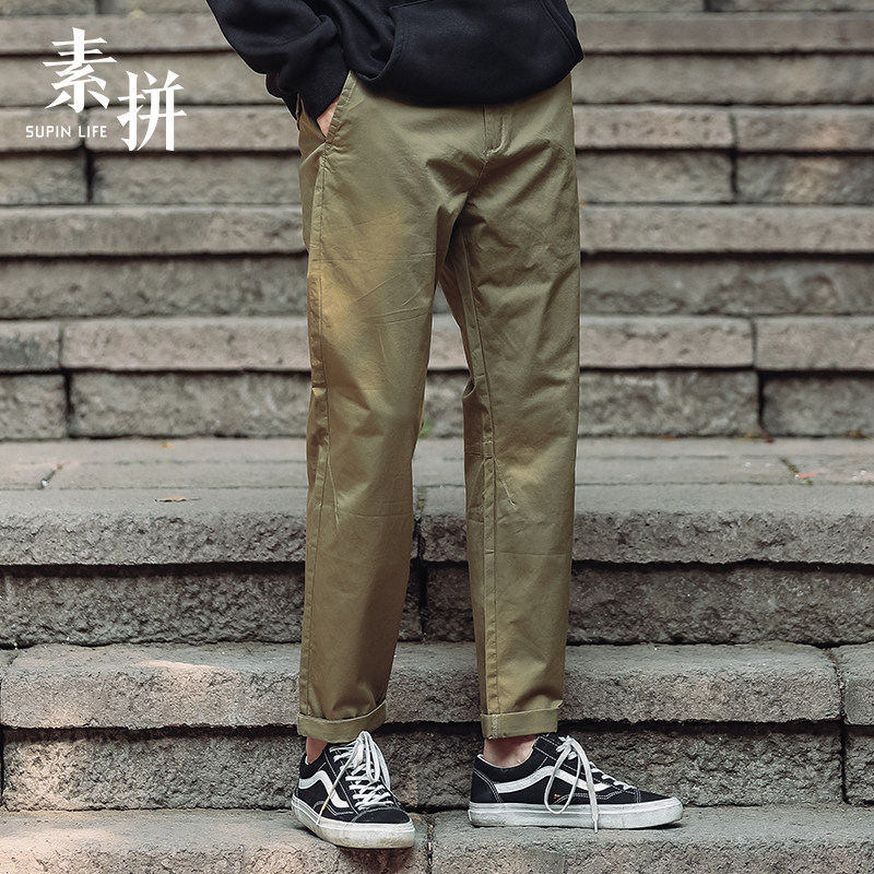 素拼男装春秋休闲裤男潮牌ins港风宽松帅气百搭工装裤小直筒长裤热门设计联盟服务商