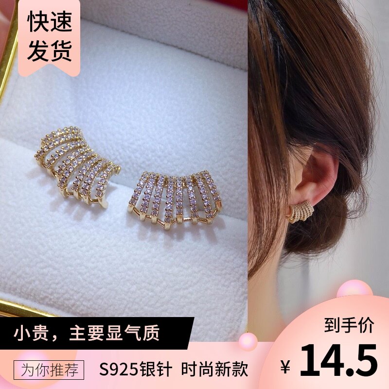 多层半圆圈高级大气镂空设计感名媛气质镶钻耳环简约冷淡风耳钉银热门设计联盟服务商