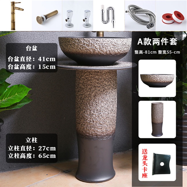 阳台陶瓷立柱盆一体落地式洗手台盆卫生间艺术花园户外洗脸池庭院热门设计联盟服务商