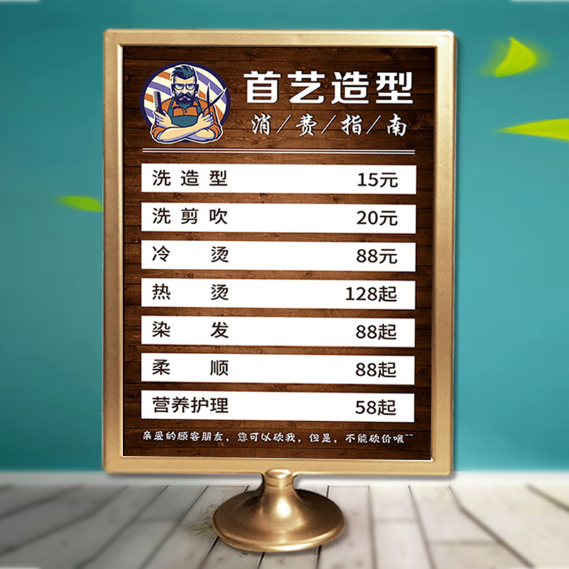 理发店价格表定制美发价目表A4单双面摆台桌卡价格牌宣传广告设计热门设计联盟服务商