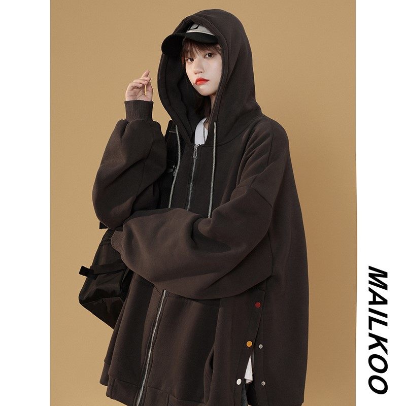 慵懒风卫衣女排扣设计感宽松带帽春秋炸街盐系vintage开衫外套潮热门设计联盟服务商