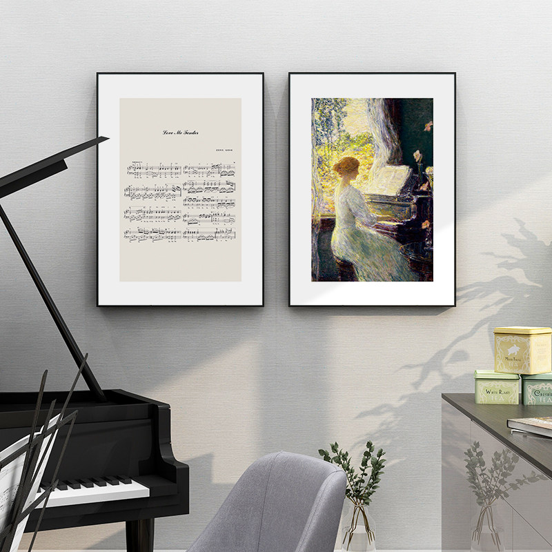 现代简约音乐装饰画钢琴上方挂画巴赫曲谱手稿餐厅房间艺术画热门设计联盟服务商