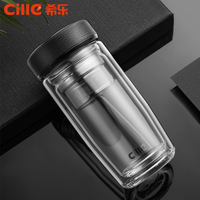 希乐双层玻璃杯男女便携水杯隔热带庚滤家用商务办公室泡茶杯子热门设计联盟服务商
