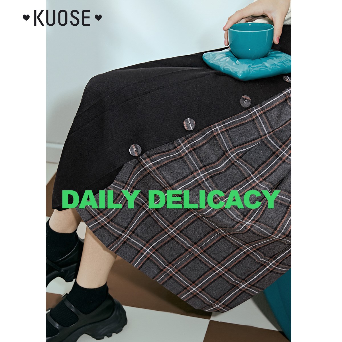 阔色设计感拼接中长款半身裙女2021新款秋冬高腰不规则a字裙热门设计联盟服务商