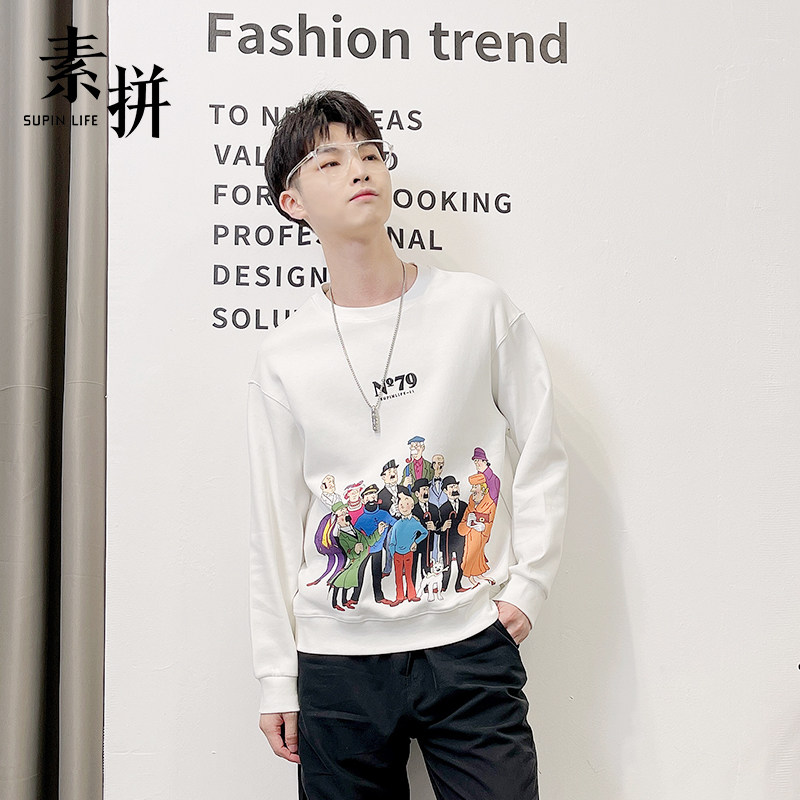 素拼男装2021新款秋圆领卫衣男ins潮流宽松卡通印花原创设计衣服热门设计联盟服务商