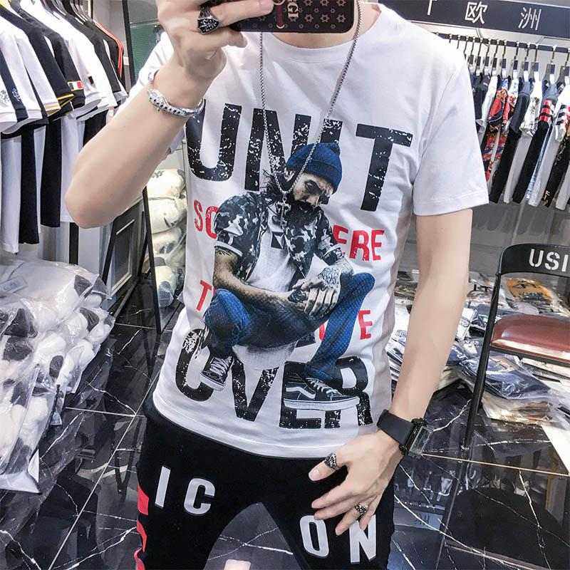 潮牌ins设计感短袖t恤男潮流款超火精神小伙半袖圆领纯棉上衣服热门设计联盟服务商