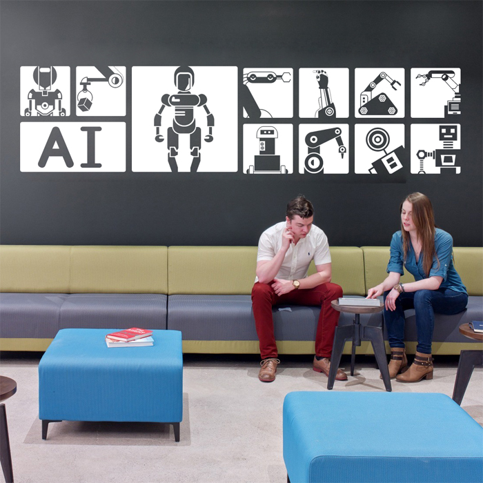 智能化机器人 科技馆学校公司办公室玄关创意个性装饰背景墙贴热门设计联盟服务商