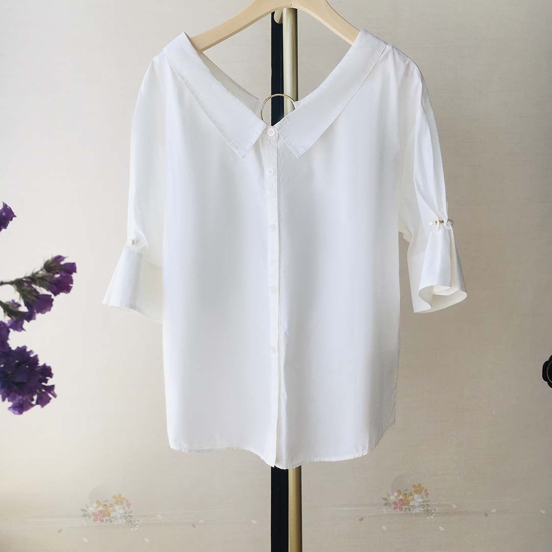 女衬衫白色翻领2021夏季新款OL气质高央袖白领休闲衫设计感薄款热门设计联盟服务商