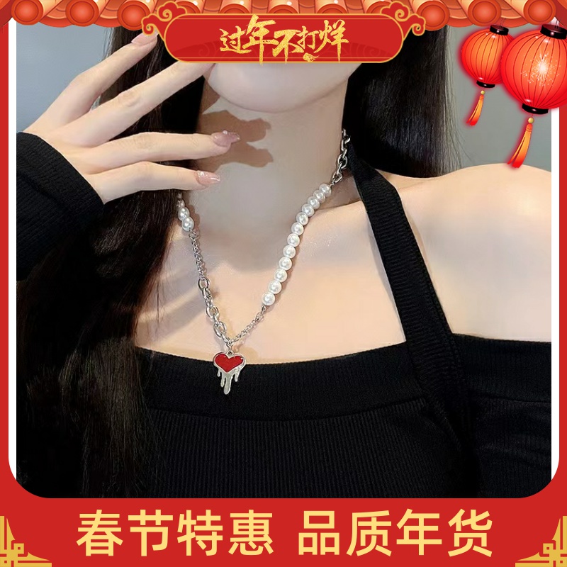 珍珠爱心项链2021年新款ins百搭女毛衣链嘻哈男士小众设计感高级热门设计联盟服务商